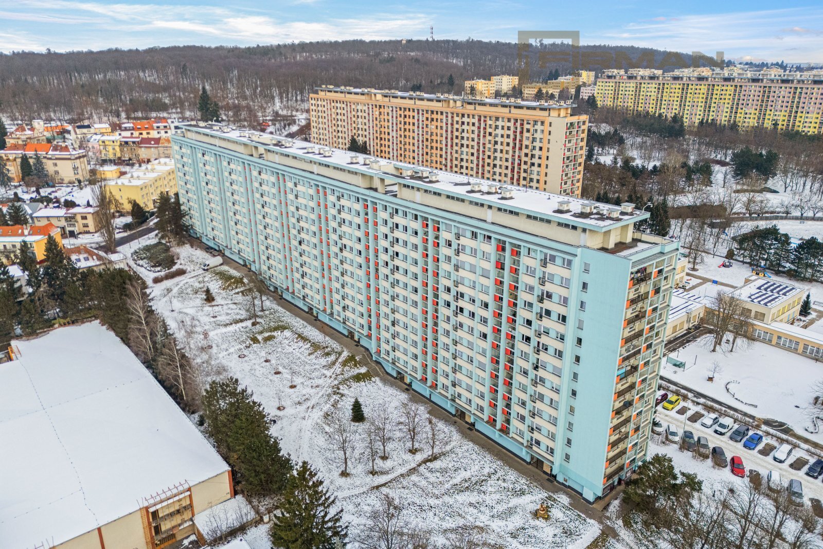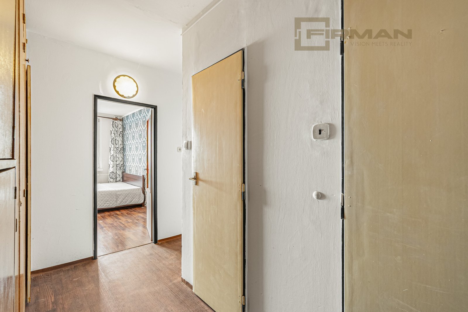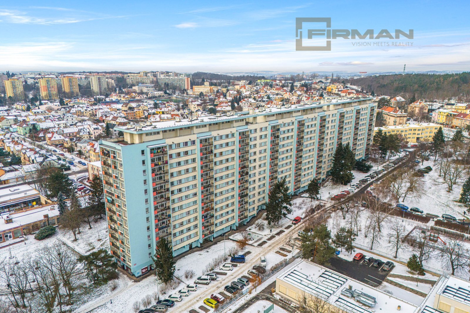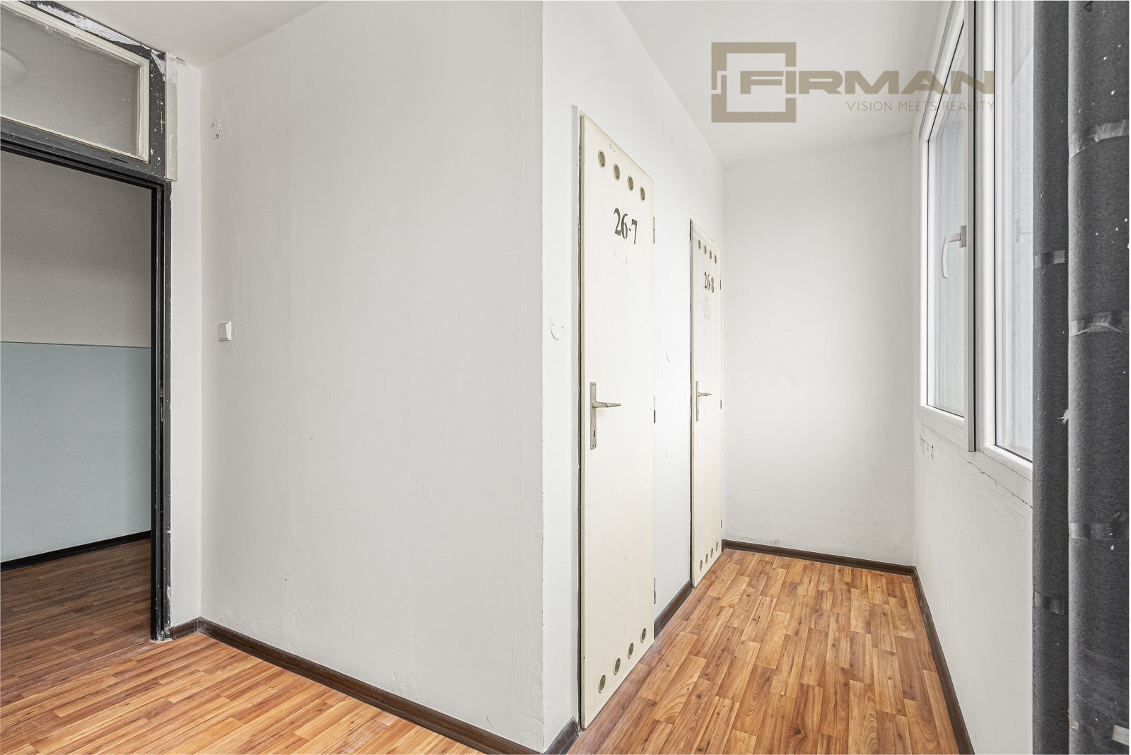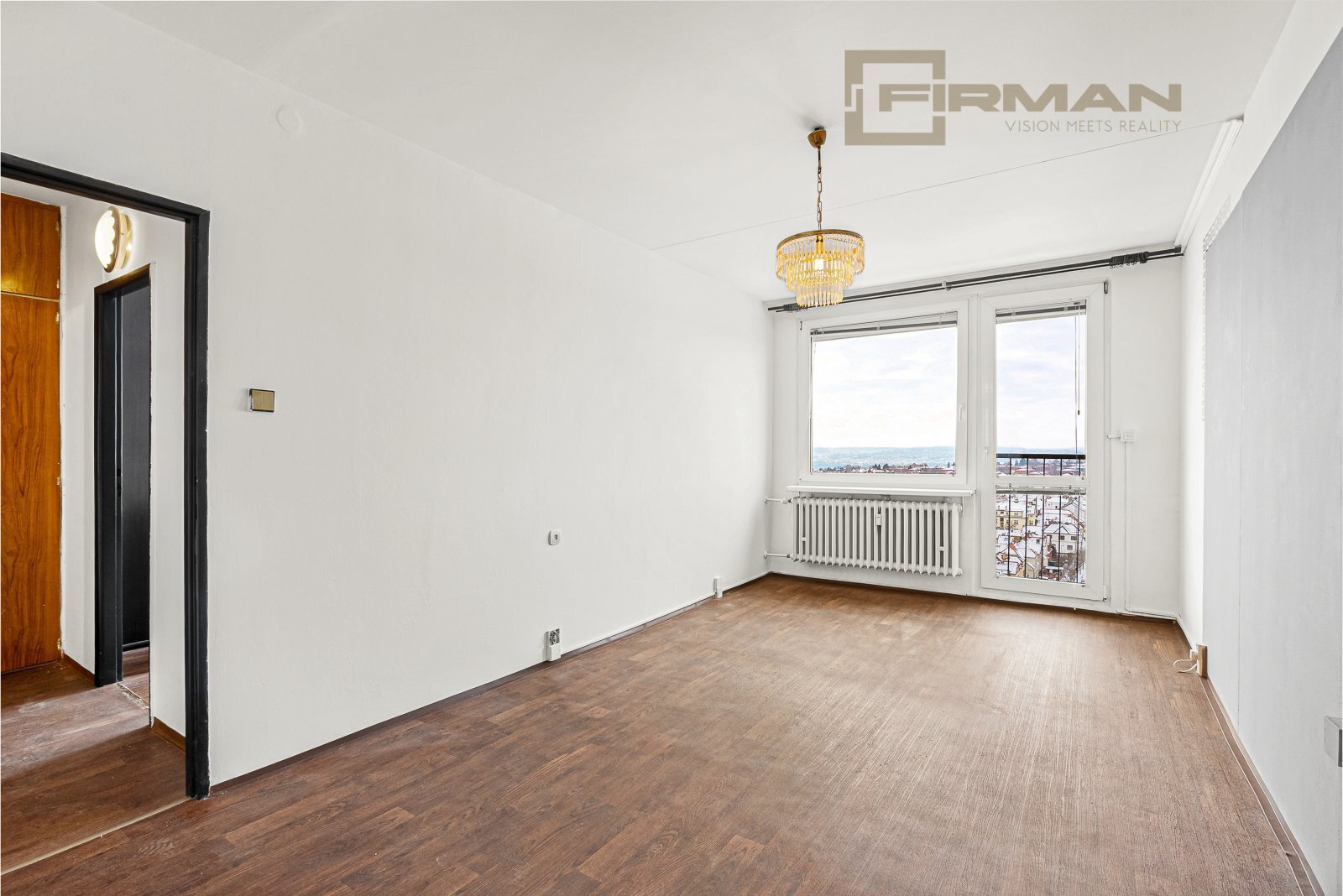 Dispozice bytu je praktická a zároveň otevřená možnostem. Je zde samostatná ložnice a obývací pokoj s francouzským oknem, díky kterému je celý prostor krásně prosvětlený, působí vzdušně a otevírá se příjemnému výhledu do okolní zeleně, což dodává bytu klidnou a harmonickou atmosféru. Byt je určen k rekonstrukci, ale zároveň je ihned obyvatelný – můžete se nastěhovat a postupně si ho dotvořit přesně podle svých představ. K bytu náleží sklepní kóje / komora o velikosti přibližně 3 m², která se nachází v 9. patře.