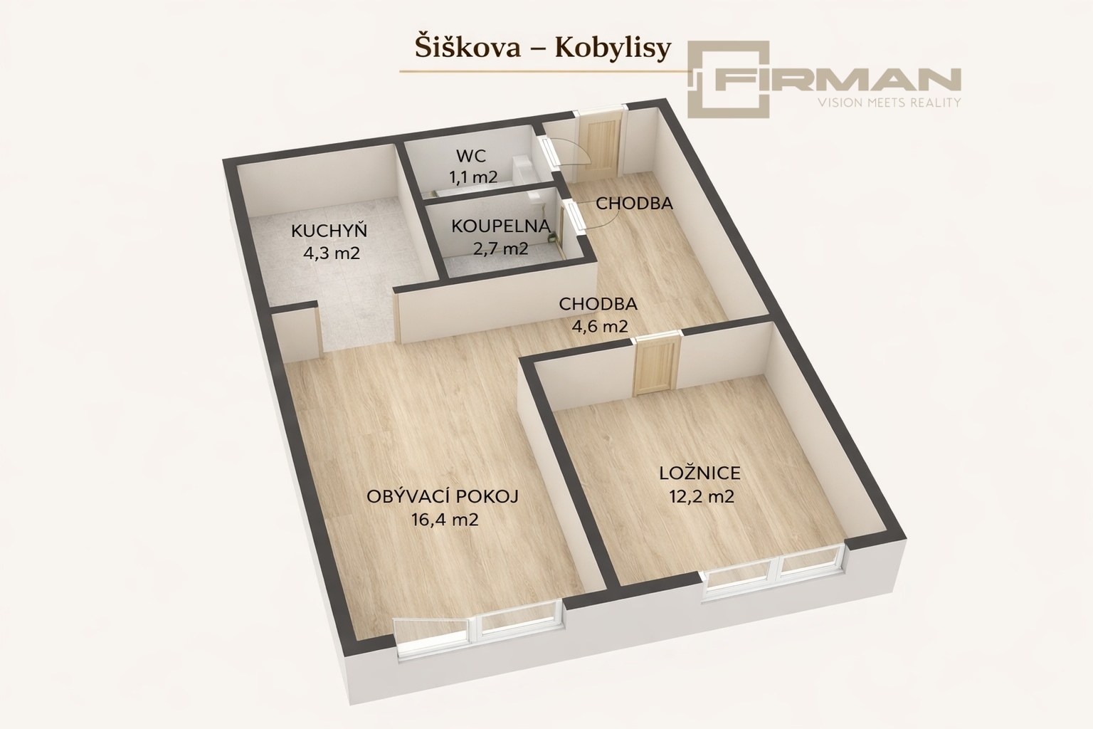 Prodej bytu 2kk 46m² v Kobylisích s možností pronájmu samostatné lodžie