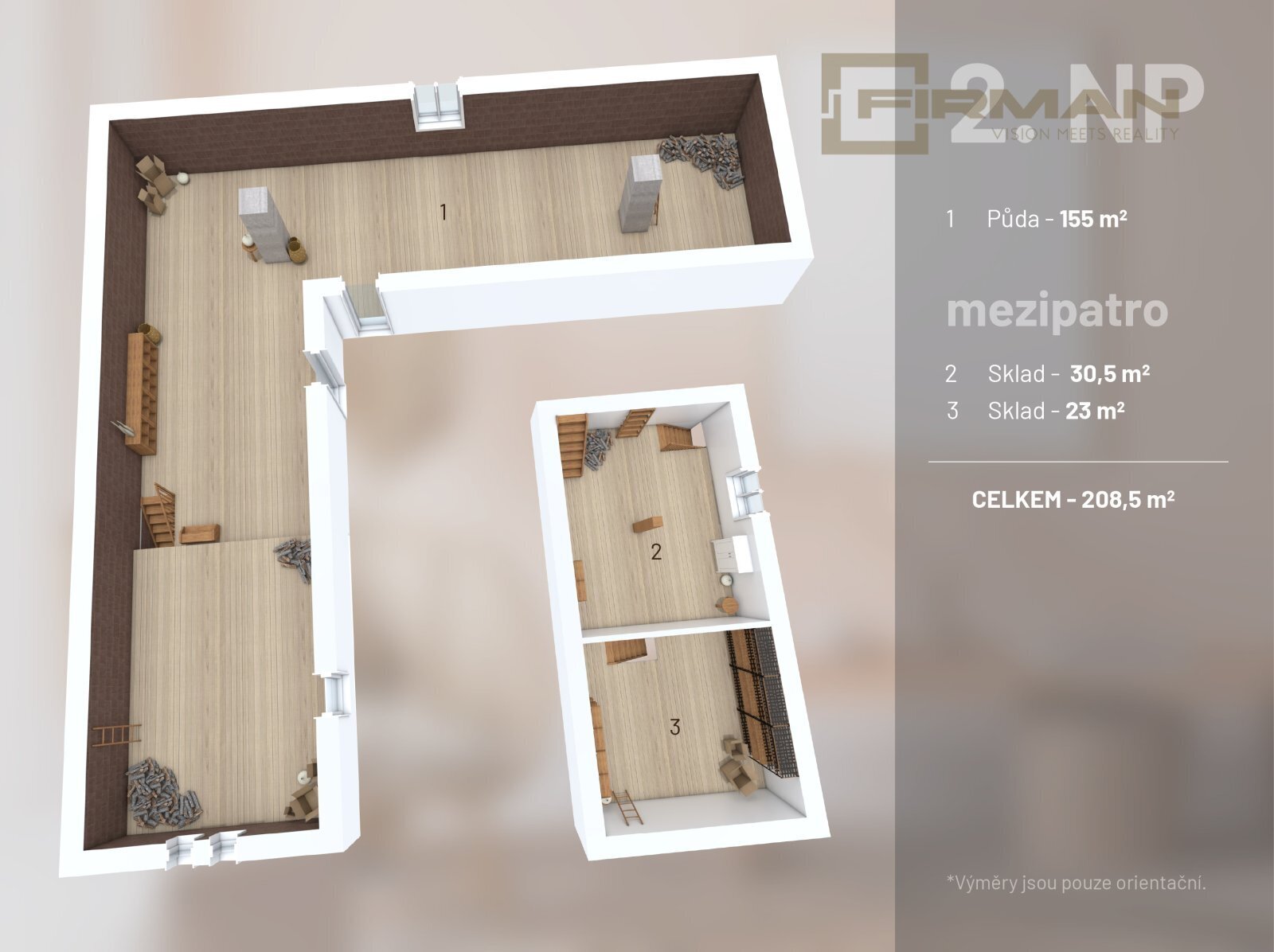 Zcela výjimečným benefitem je rozlehlá půda, která nabízí možnost vybudování nadstandardních podkrovních prostor. Lze zde realizovat další obytné místnosti, samostatné bytové jednotky, apartmány nebo velkorysé úložné prostory. Půdu je zároveň možné ponechat v původním stavu a zachovat tak autentický charakter venkovského domu.
