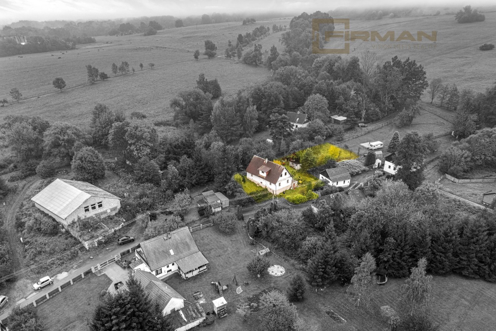 K domu náleží soubor pozemků, přičemž uvedená výměra je přibližná, aktuálně probíhá nové vytyčení hranic pozemku. Nová hranice je zobrazena na přiloženém obrázku. Pod domem je venkovní dílna a sklep o celkové rozloze cca 22 m², ideální pro uskladnění vybavení.